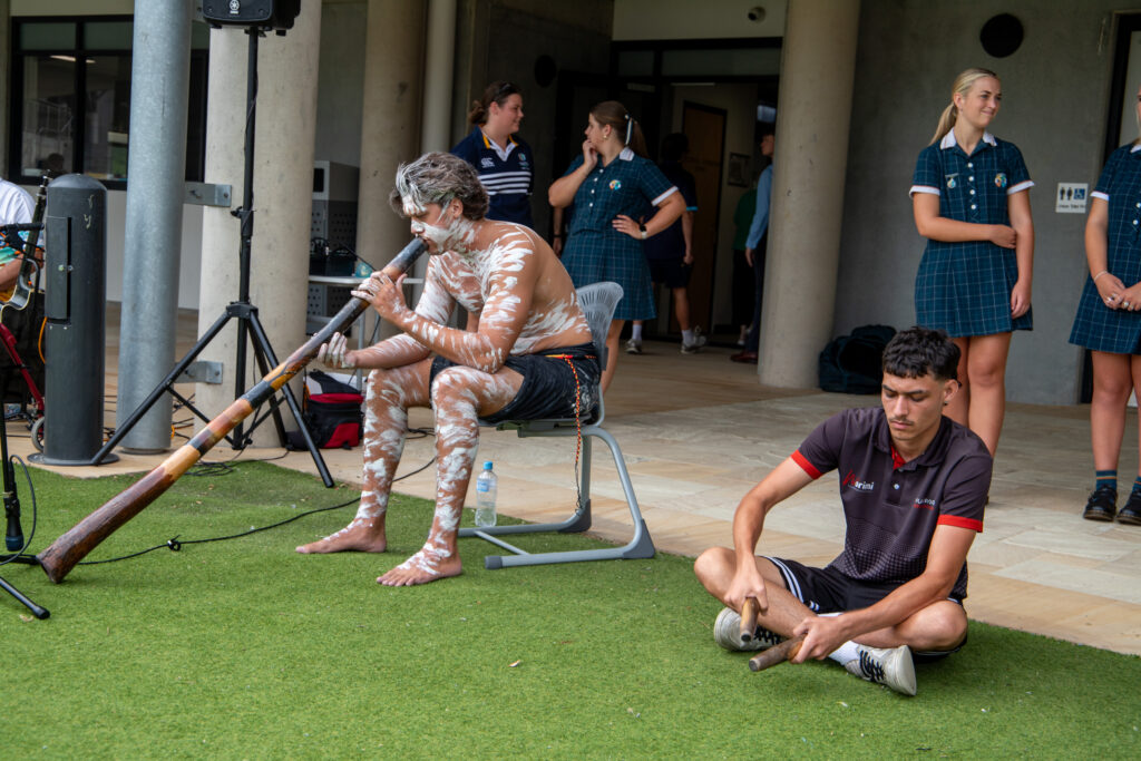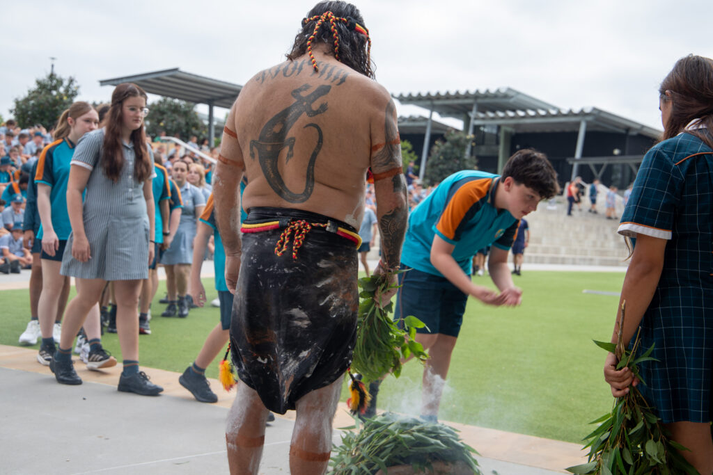 The morning opened with a Welcome to Country and Smoking Ceremony conducted by Uncle John and Uncle Justin and accompanied by other members of the Murrook Culture Centre at Williamtown. The ceremony provided pause and reflection for the year to come, grounding the day in connection to Country and recognising the significance of place within the life of the College.