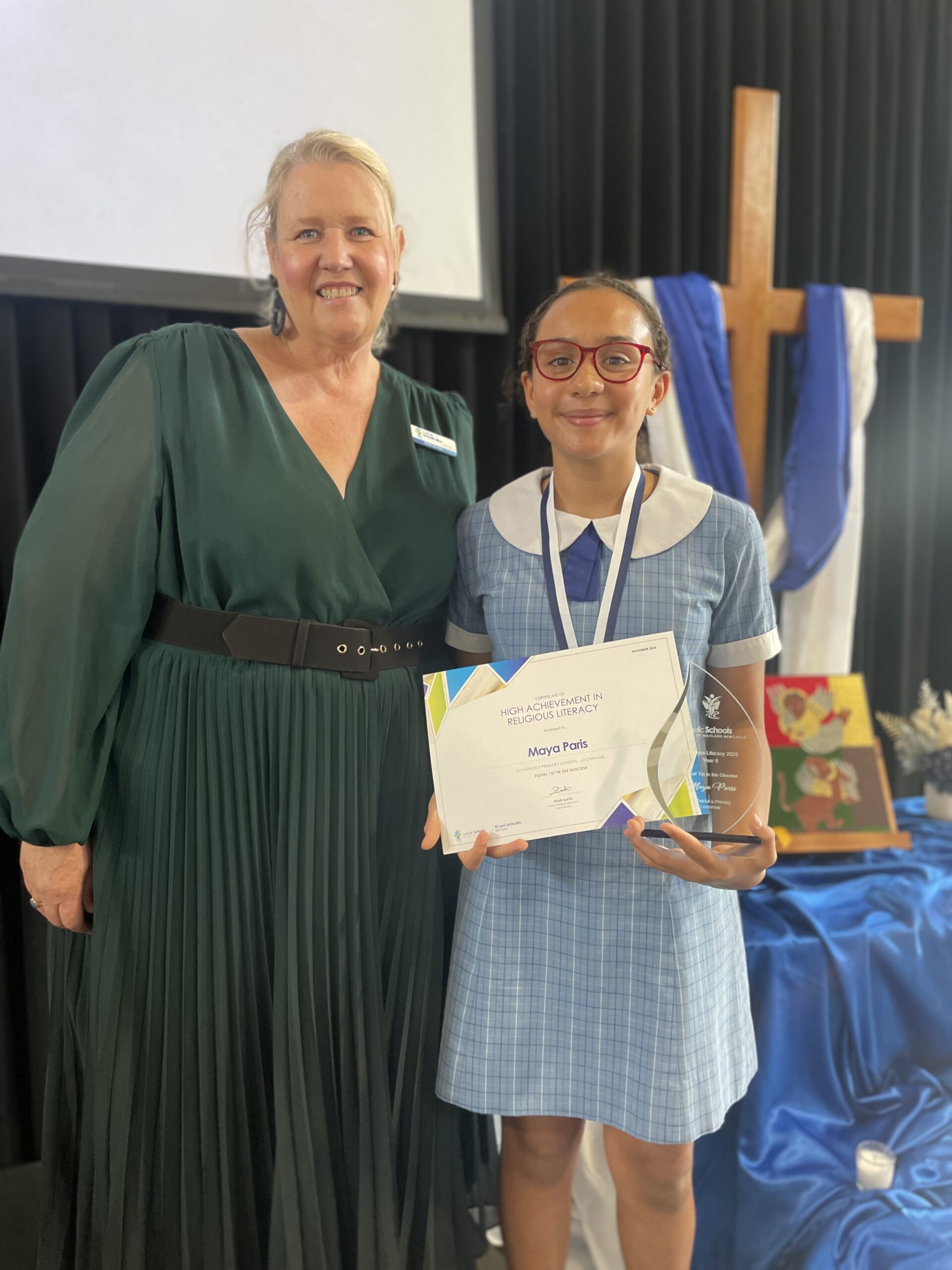 - Equal First for Year 6 Religious Literacy – Maya Paris, St Patrick’s Primary School, Lochinvar, Aiden Dennis, St John’s Primary School, Lambton and Lyla Whitney and St Joseph’s Primary School, East Maitland