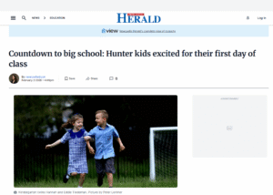 Talking in sync, the five-year-olds said they were feeling good about starting big school at St James’ Primary School in Kotara South on Wednesday, February 4.