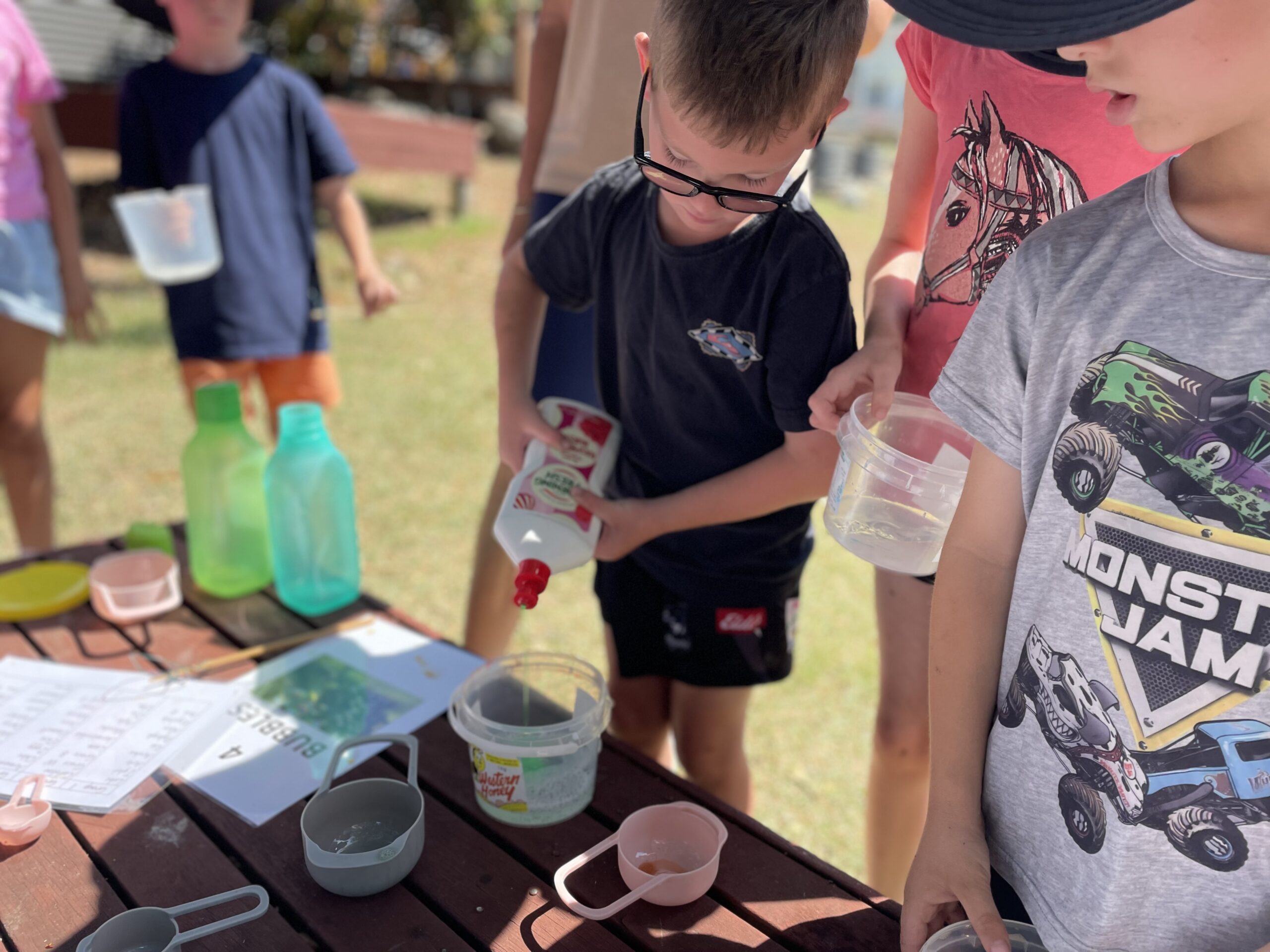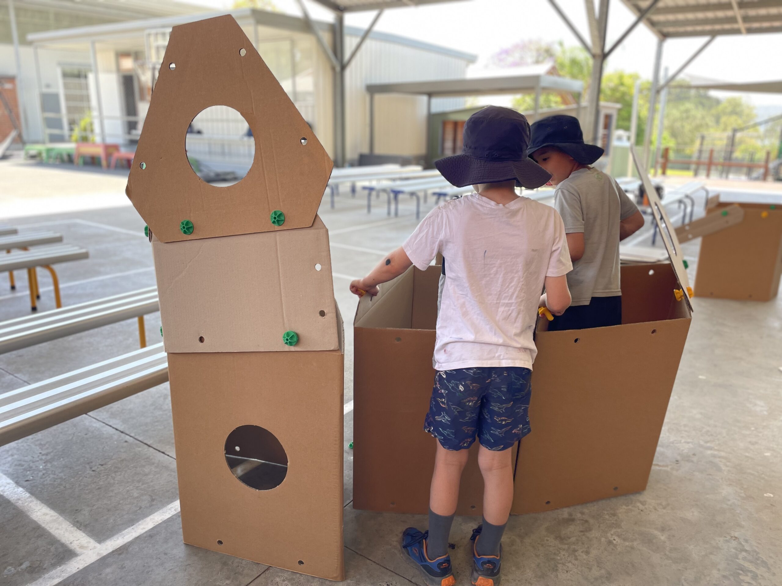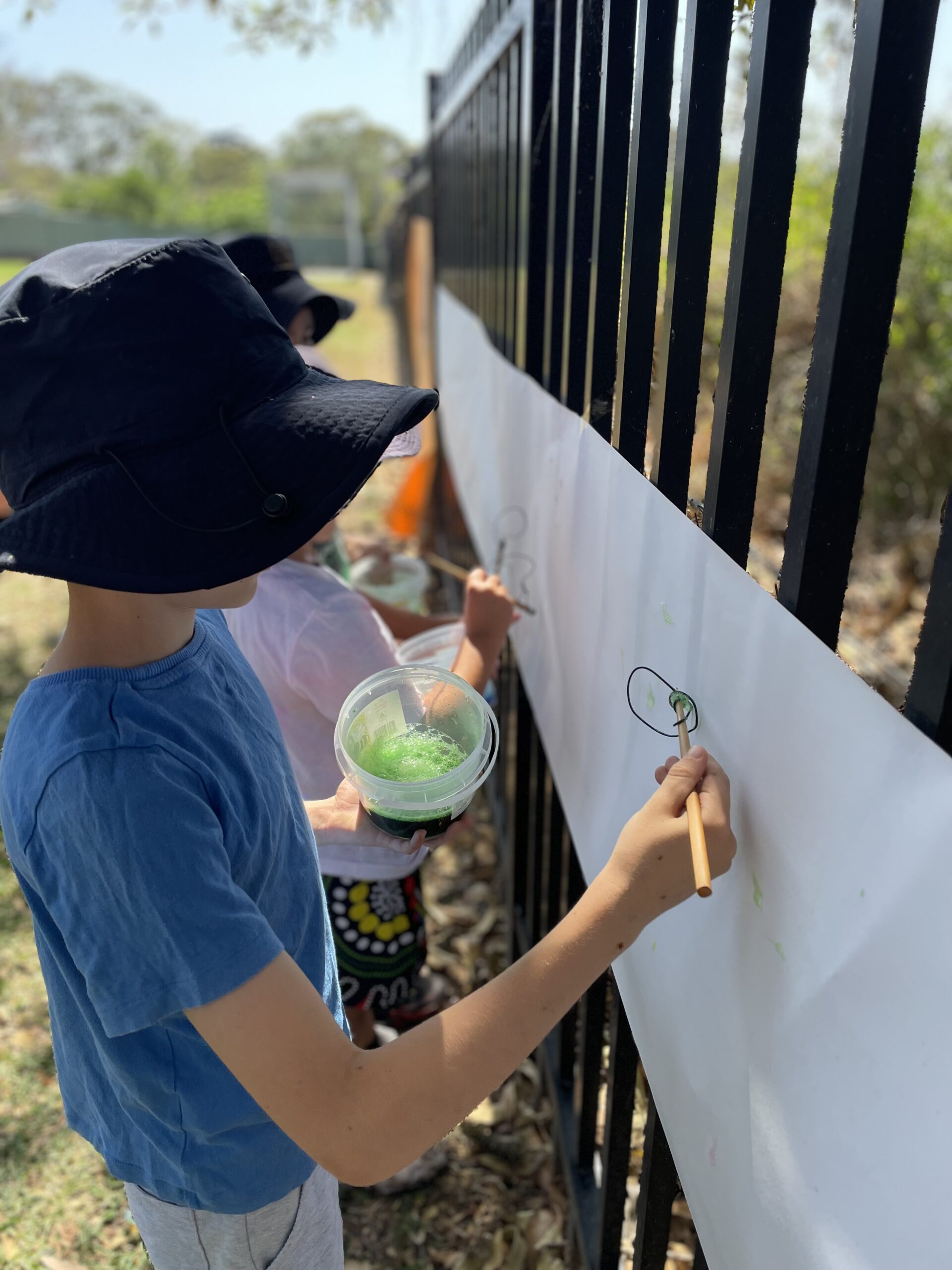 Every fortnight, all K-2 students now gather outdoors for sessions that blend fun, agency and learning. Five creative outdoor ‘provocations’ encourage exploration and imagination – construction with blocks and cardboard boxes, outdoor mud kitchen, creative dress ups, bubble making, painting and investigating the natural environment.