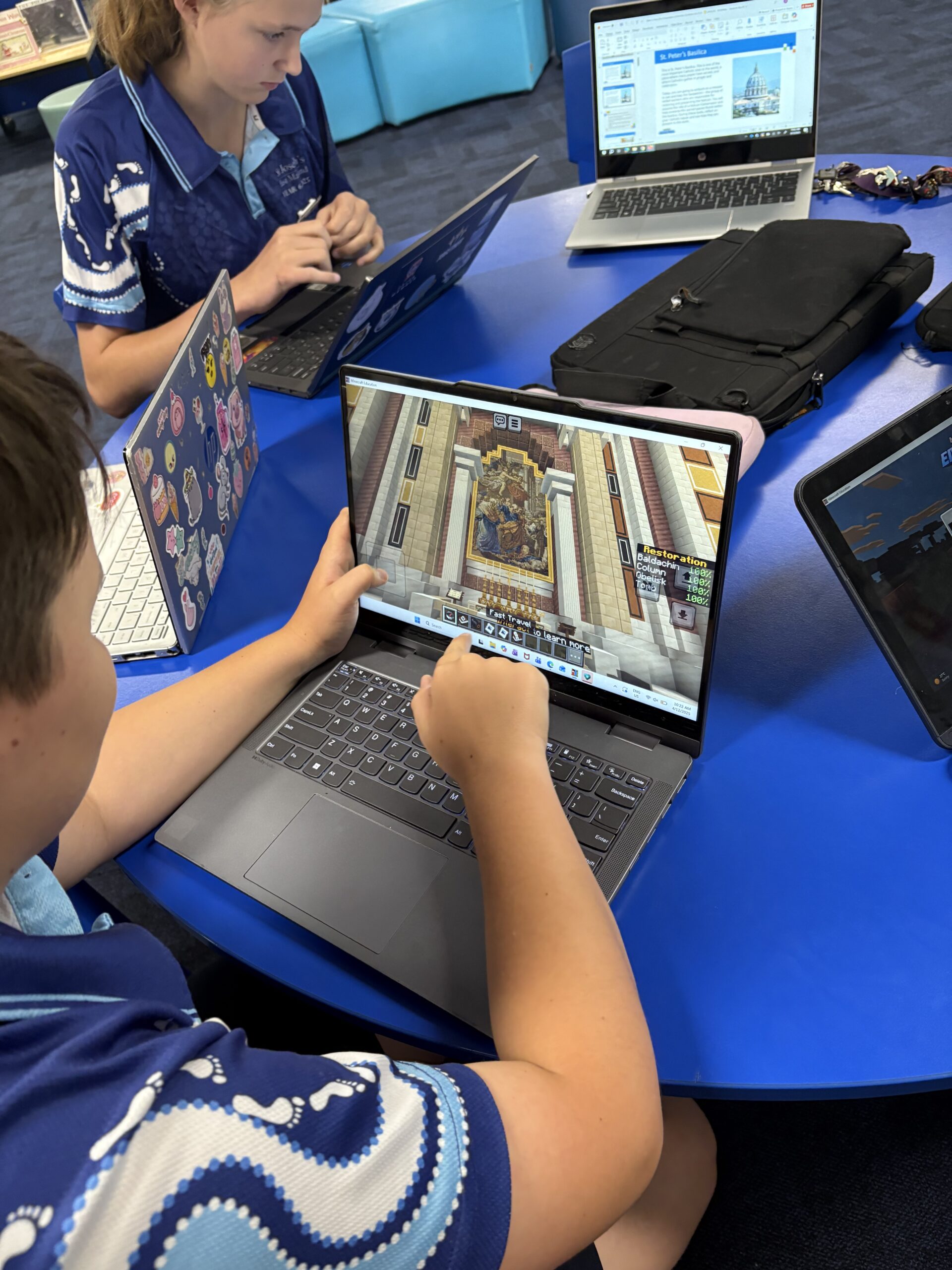 Students from St Joseph’s Primary School, East Maitland experiencing St Peter’s Basilica through Minecraft Education