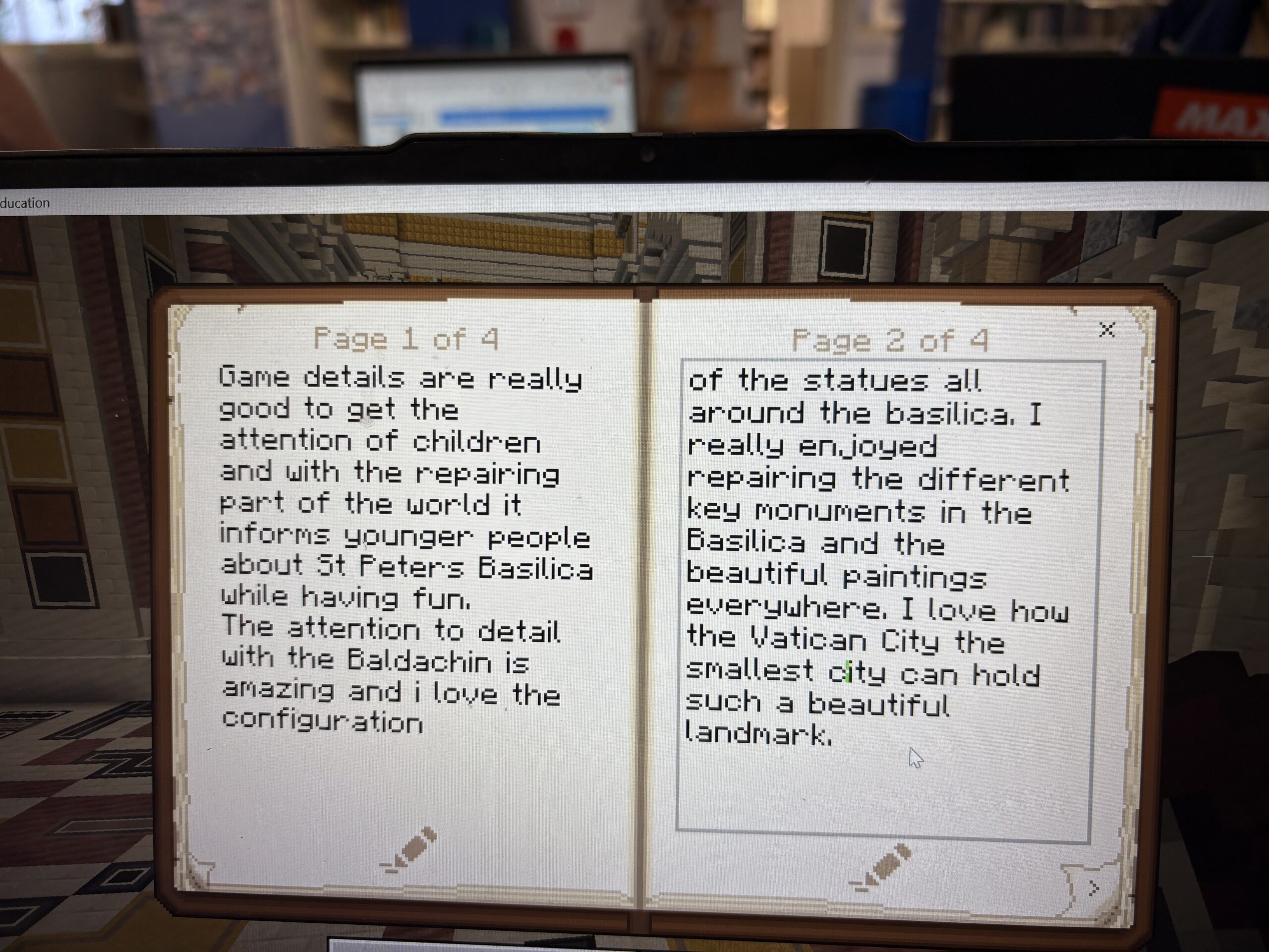 Within Vatican City stands the magnificent St Peter’s Basilica, the largest church in the world. More than 2,000 years old, the ancient history and wonders of St Peter’s can now be explored directly from classrooms across our Diocese through an exciting new Minecraft Education world.